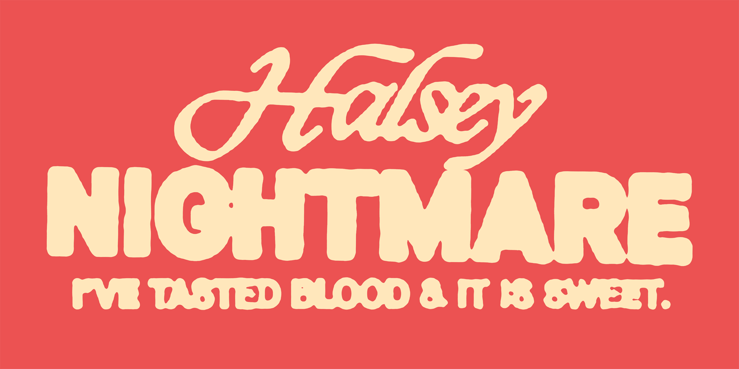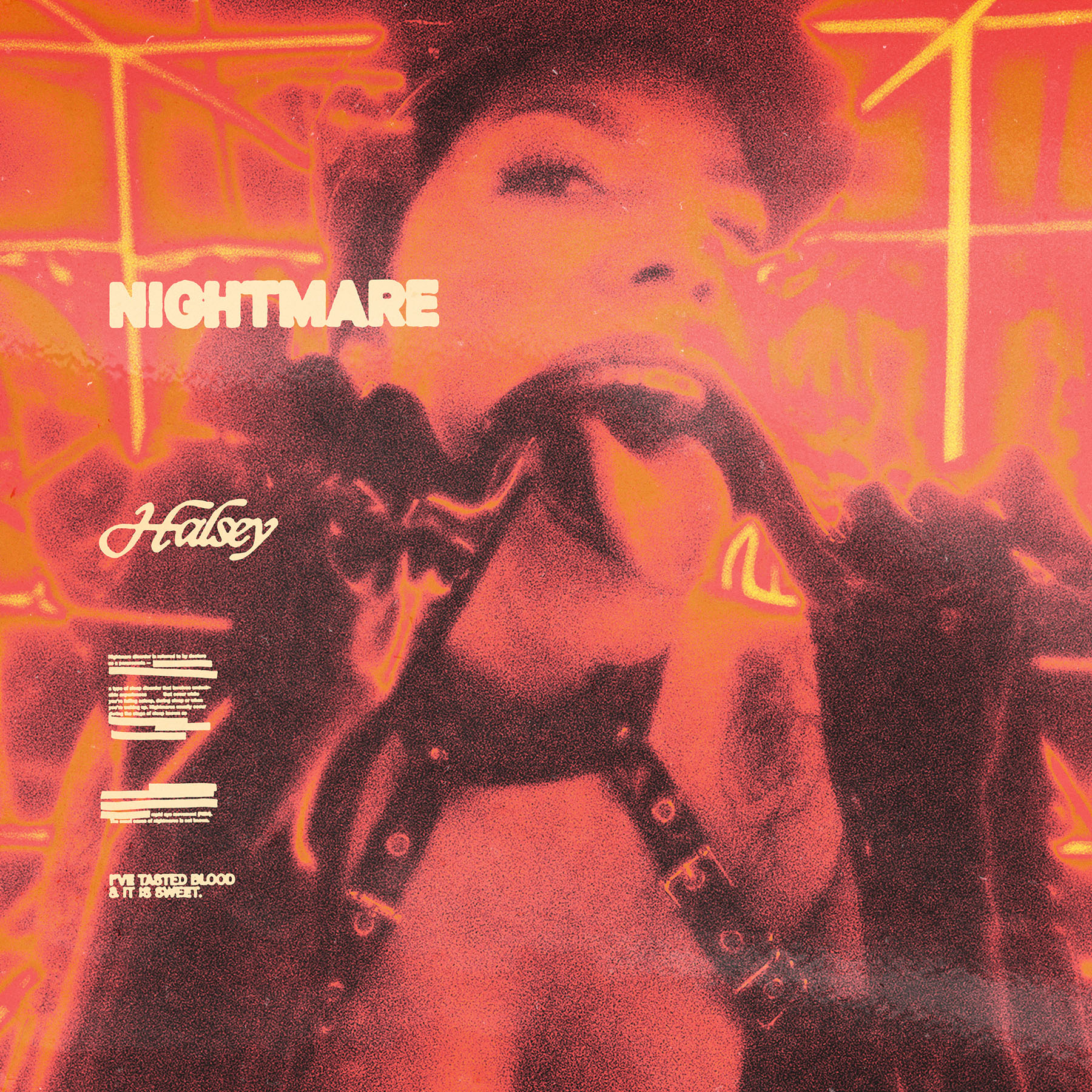 Official artwork for Halsey's "NIGHTMARE," the first single from her "Manic" album campaign – with featured Manic campaign designs above.