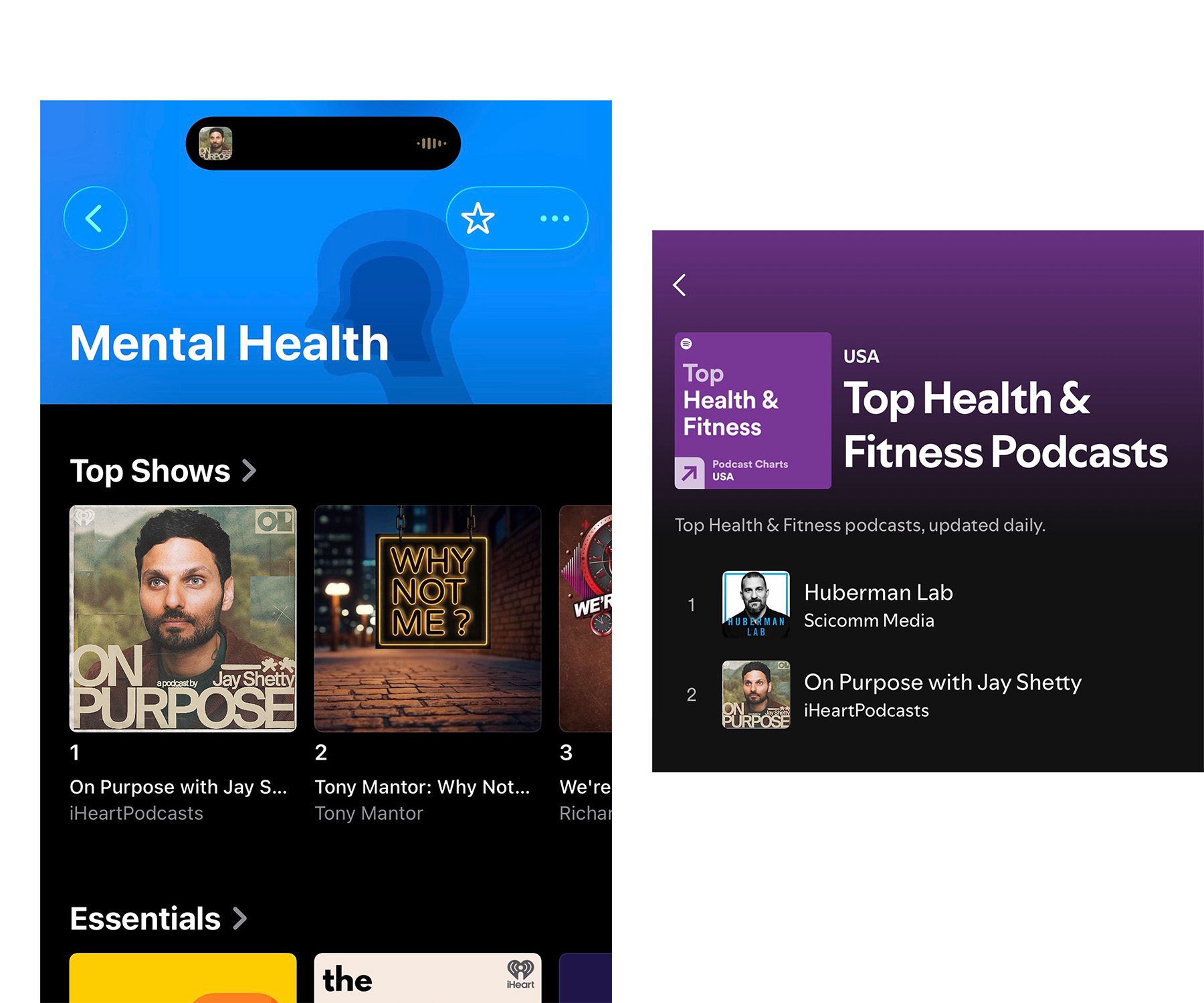 Identity rebranding for On Purpose, a top-ranked podcast and wellness platform by Jay Shetty focused on mental health, mindfulness, and personal growth.