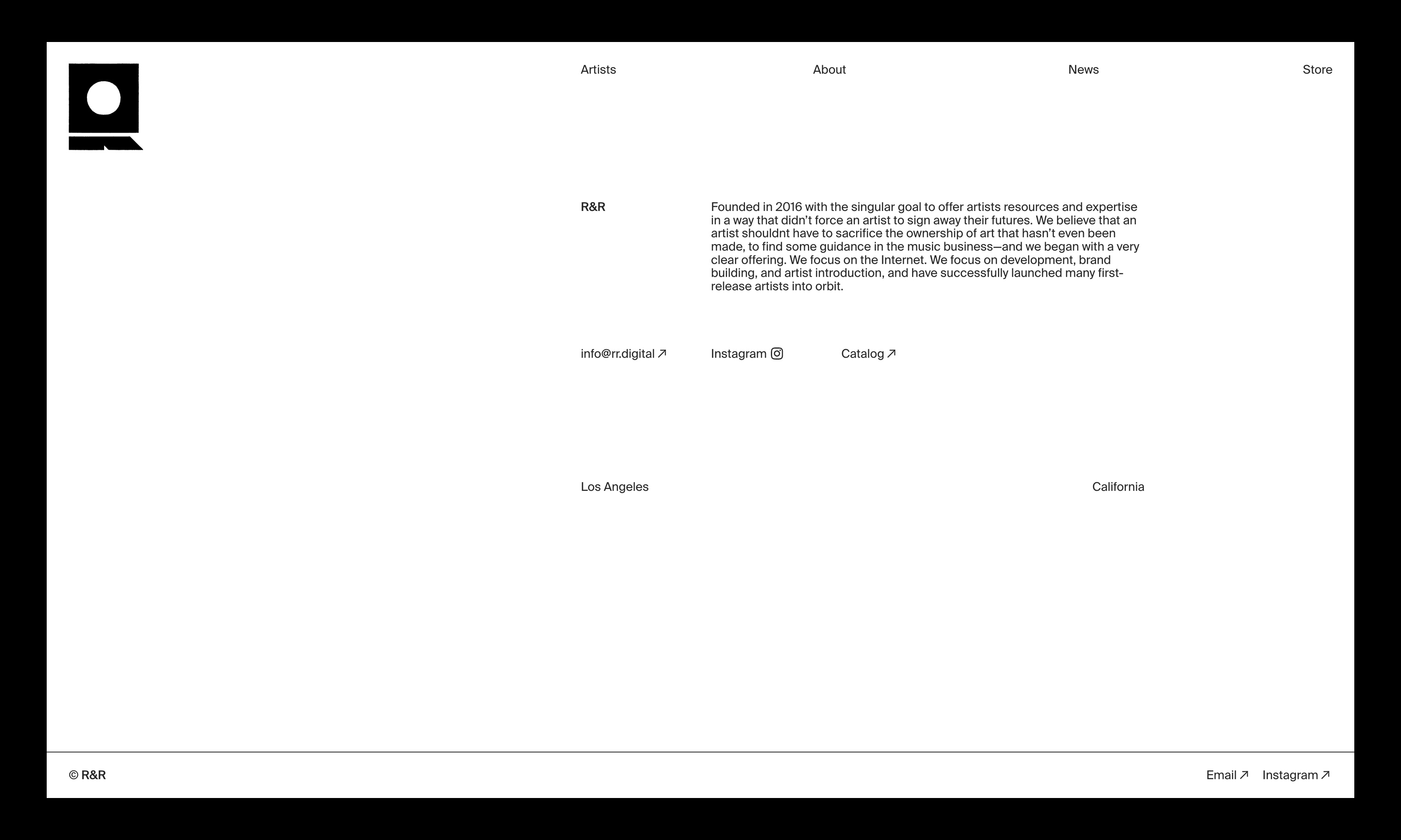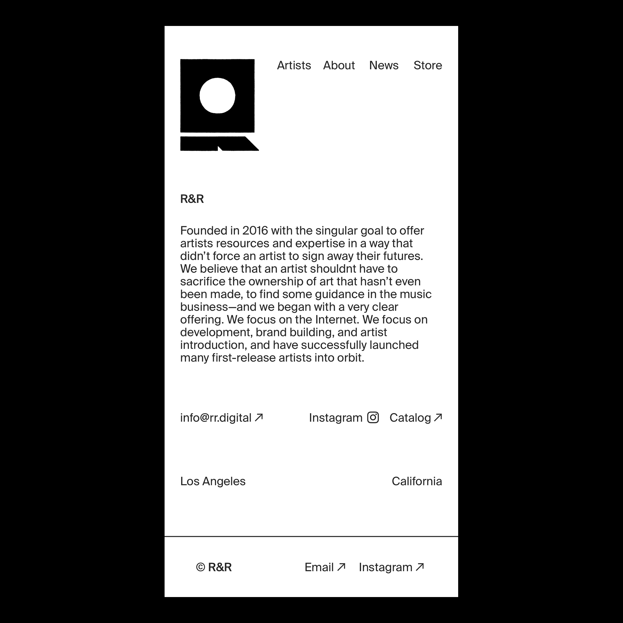 The logomark is designed to reflect R&R's premium curation and vintage artist-first ethos, built to scale across modern digital and physical music label touchpoints – from socials and web, to vinyl labels, OOH, and brand merch.