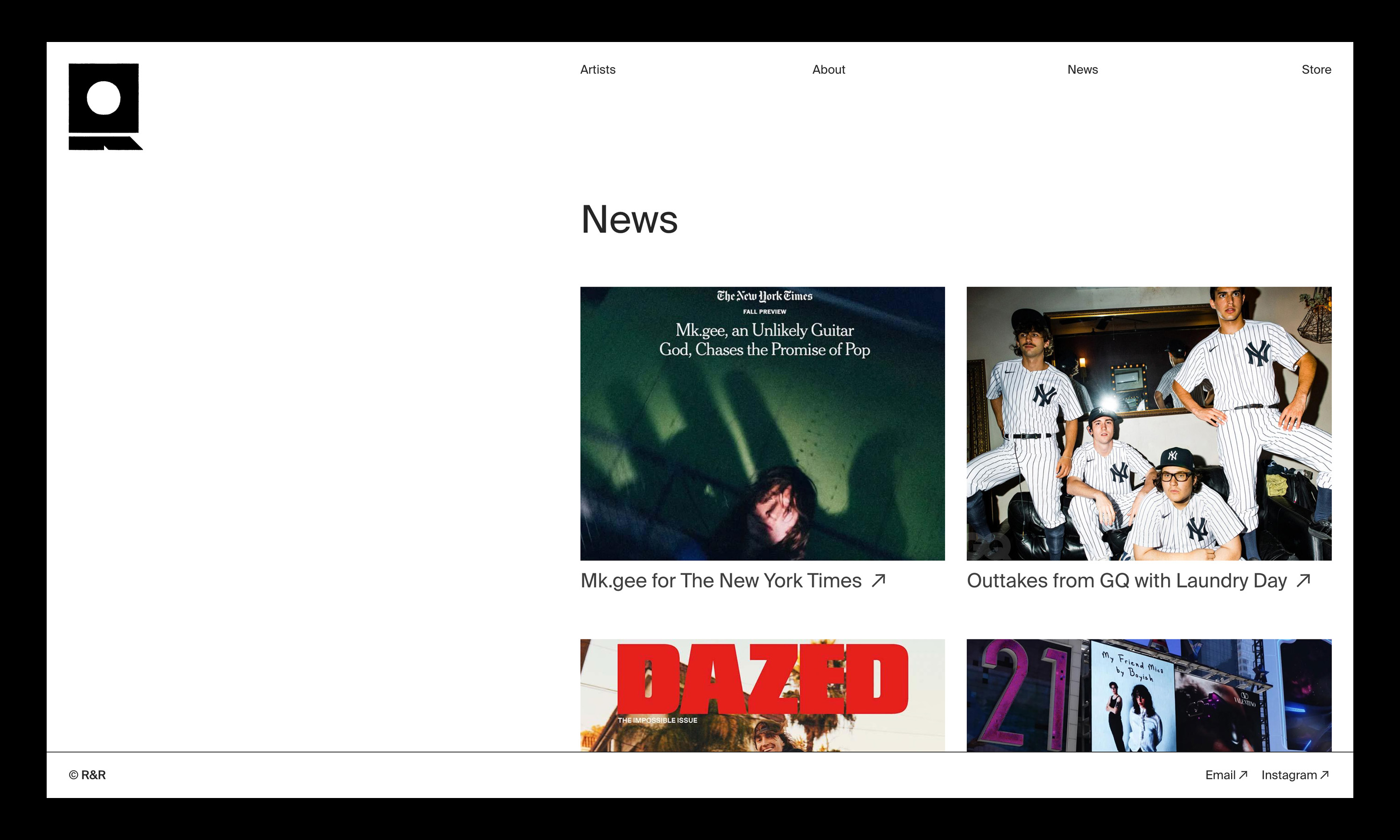 Identity rebranding created for Los Angeles-based, artist-focused indie label, R&R – home to artists such as Mk.gee and Dijon.